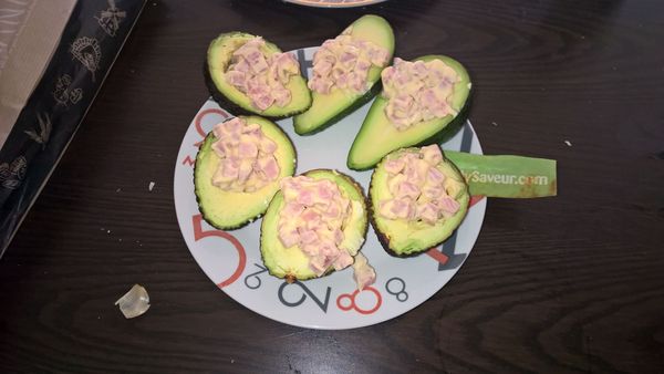 Nous n'avons pas accroché ,c'est dommage de ne pas mélanger la chair d'avocat en dés avec la mayonnaise et le jambon. Là, c'est trop écœurant, on a l'impression de ne manger que de la mayonnaise.
