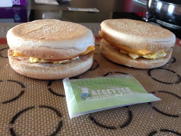 Très bon presque comme au macdo ! Je les faisais habituellement avec un autre type de cuisson de l'œuf et la, j'avoue qu'avec l'œuf brouillé c'est super bon !! Adopté pour les ptit dej du dimanche!!