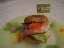 Du coup, un bagel bien gourmand, j'ai fait la version avec le jambon cru et tous les ingrédients allaient bien ensemble. - 17/20