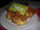 Avec les ciseaux, découper les feuilles de brick en 36 carrés pour obtenir 12 fois 3 épaisseurs.