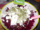 Une salade qui a du peps avec le citron, féta et betterave, sympa le mélange.