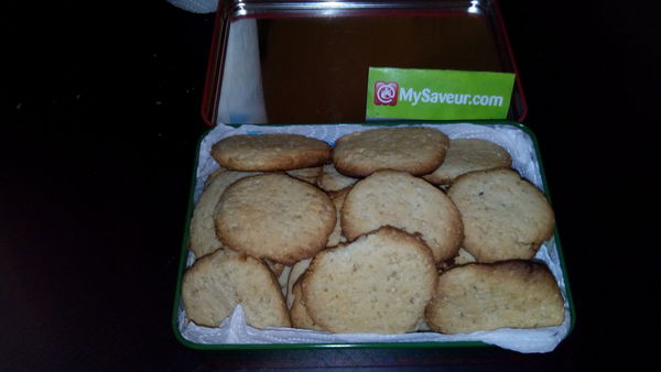 « Petit colis prêt à être envoyé. Ces petits biscuits pour vous souhaiter une très belle année 2015. Attention, à la fin de cuisson, ça va vite, ils doivent être légèrement dorés. »