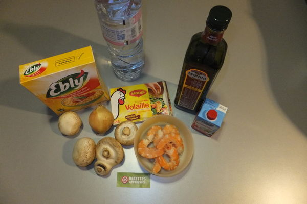 C'était bon mais nous avons préféré la version classique avec du riz. J'ai utilisé des gambas qui se sont très bien mariées avec les champignons frais.