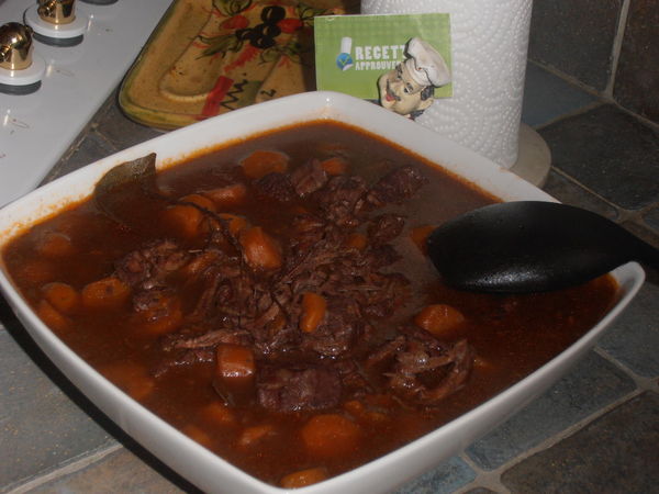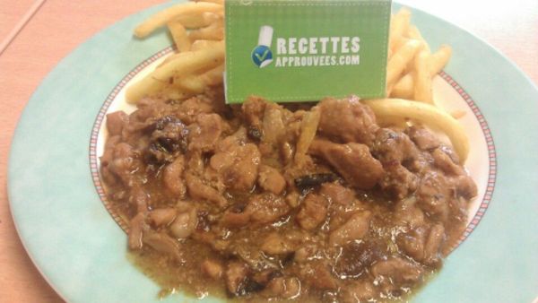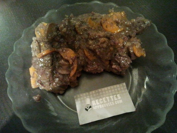 « Je ne fais pas mariner la veille car cela serait trop fort. Le vin ne doit pas être trop fort, et pas la peine de prendre un bon vin il passerait inaperçu, par contre en général on finit la bouteille à table, alors pas de piquette. Accompagnez de ma purée maison. Bon appétit »