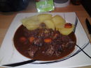 Une bonne recette de bourguignon, la viande était bien tendre et l'ensemble était satisfaisant. La sauce adoucie l'ensemble.
