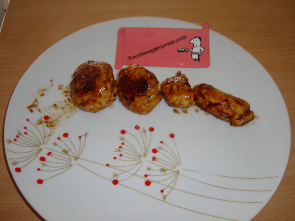 Hummm vraiment très bon, je n'ai pas eu de difficultés pour façonner mes boulettes (petite astuce : mouillez vos mais et façonner, les boulettes n'accroche pas). La sauce est très bonne, presque comme au resto chinois, merci pour cette recette que je garde dans mon carnet...