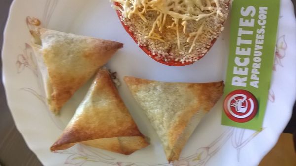 Mettre une càc du mélange par feuille de brick. Pour le pliage en triangle, suivre les indications au dos de votre paquet.