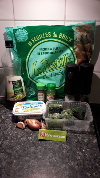 Préparer une brick en mettant un peu d'épinards avec un peu de féta en suivant les consigne sur l'emballage pour former un triangle.