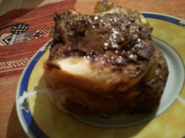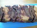 j'ai eu un peu de mal à mettre en place les morceaux de pâte, ce qui explique l'aspect "pas très net" de ma brioche, ce qui n'empêche qu'elle est bonne. A refaire