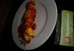 Monter les brochettes, un dés de poulet et un coeur artichaut.