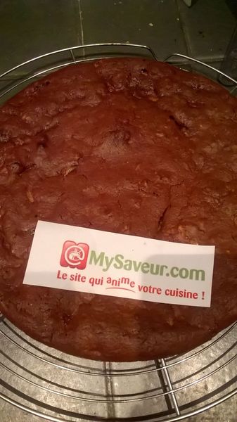 Bon gâteau qui sent bien le chocolat et la banane. Les noisettes sont un vrai plus avec le goût et leur croquant. J'ai utilisé de la compote maison. Mon moule était de toute évidence trop grand alors le gâteau est tout raplapla, alors je n'ai fait cuire que 15min et c'était très bien.