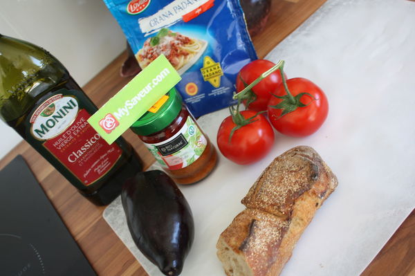 Couper l'aubergine en tranches (environ 0,5 cm d'épaisseur). Faire chauffer un filet d'huile d'olive et faire colorer les aubergines sur les 2 faces (compter environ 10 min).