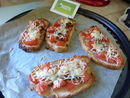 Tartine qui manque de saveurs (jambon, parmesan, mozzarella) et j'aurais grillé le pain avant de tartiner.