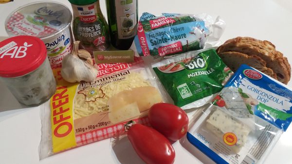 Ce grand classique de la bruschetta chez moi, m'a un peu déçue ! À la lecture des ingrédients, je me disais déjà : comment cette pauvre bruschetta va pouvoir supporter tout ce poids ! En ce qui concerne le choix des fromage : excellent ! Mais crème ou tomates, il va falloir choisir ! Trop d'ingrédients, c'est dommage.
