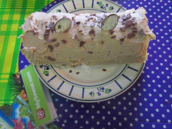 « Une nuit de repos au frais pour la ganache et 1h de repos au frais pour la bûche. »