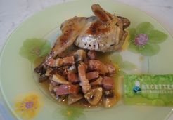 Comme Mylène S. j'ai pris des lardons pré-découpés, et du fond de veau pour cause de pas trouvé le Cœur de bouillon. La recette est très claire, et le résultat est bon. Les cailles sont cuites juste comme il faut, et la garniture est bien parfumée grâce au thym et au laurier. Je referai avec des blancs de poulet (parce que c'est plus simple à manger, surtout pour les enfants !)