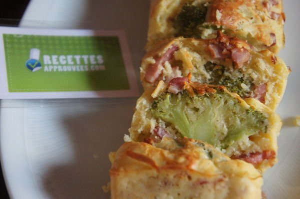 J'ai trouvé la pâte très épaisse et les brocolis n'ont pas été faciles à insérer mais au final cela a donné un cake très bien cuit, pas du tout sec, très bon et ça fait manger des légumes. J'ajouterais juste de la moutarde dans la pâte pour relever un peu ou du tabasco.