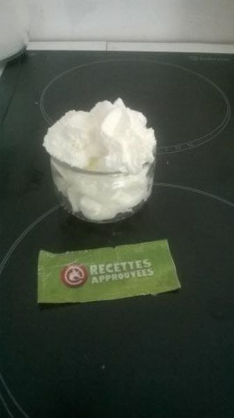 Une bonne chantilly très facile à faire avec le siphon. J'ai divisé les quantités par deux, car nous étions peu nombreux. Le petit goût citronné est très agréable avec des fraises.