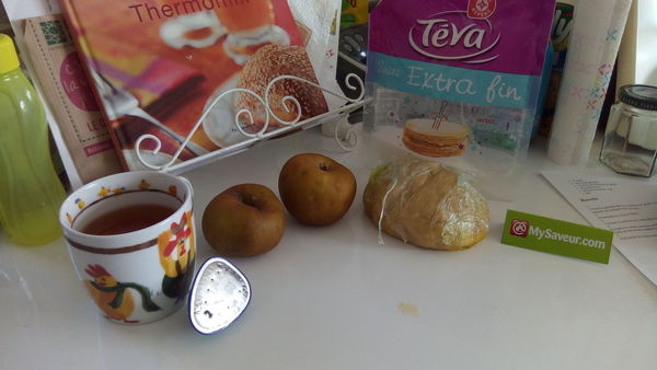 Dans le thermomix, mettre les pommes, le thé filtré et le sucre. Chauffer 12 min à 90°C vit. 2. A la fin de la cuisson, mixer 15 sec vit 5.
