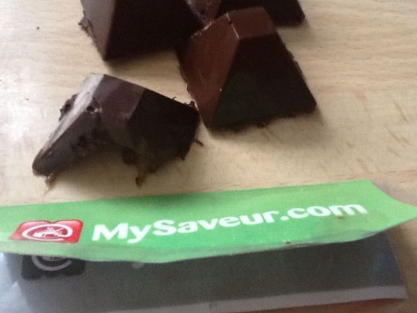 J'ai utilisé un caramel fait maison. Bonne association entre les deux ingrédients. En bouche, le caramel était légèrement coulant. Très bon.
