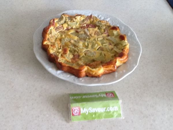 Déposer la rhubarbe dans un plat à clafoutis.