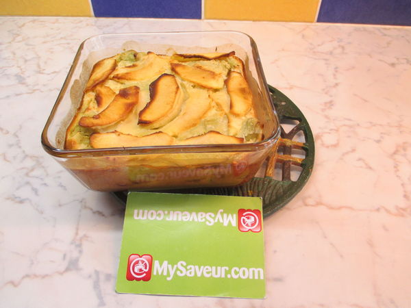 Bon clafoutis aux pomme avec un bon goût de noisette. Très facile à faire.