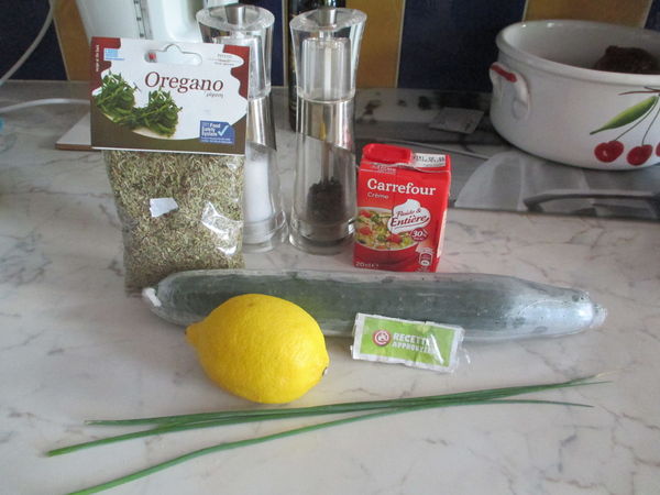 J'aurais mis moins de citron et pas d'origan. Par contre, concombre crème et ciboulette c'est top.