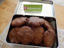Des cookies américains dignes de ce nom. Ils ont une belle couleur dorée grâce à l’ajout du cacao qui est d’ailleurs une super idée. Le temps de cuisson est impeccable. Ils ont un très bon goût mais j’ai trouvé qu’ils étaient quand même un peu trop sucrés, un peu trop gras et qu’ils finissaient par être écœurants. J’ai refais une fournée avec 90 grammes d’huile de coco et 160 grammes de cassonade et là pour nous, ils étaient plus que parfaits !