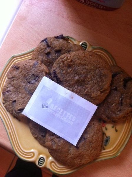 Très bon cookies, moelleux et croquant à la fois, j'ai à peine eu le temps de prendre les photos, les enfants se sont jetés dessus...