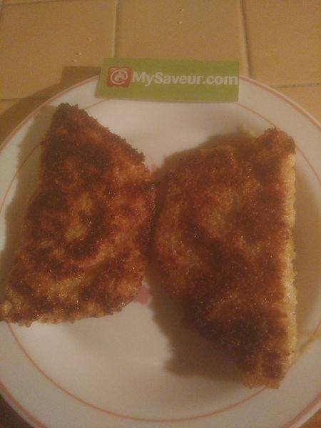 Prendre une tranche de jambon, la recouvrir à moitié de comté râpé et replier la tranche de jambon. Imbiber des deux cotés, la tranche de jambon repliée dans la farine, l’œuf et la chapelure. Opération à répéter en fonction du nombre de cordon bleu.