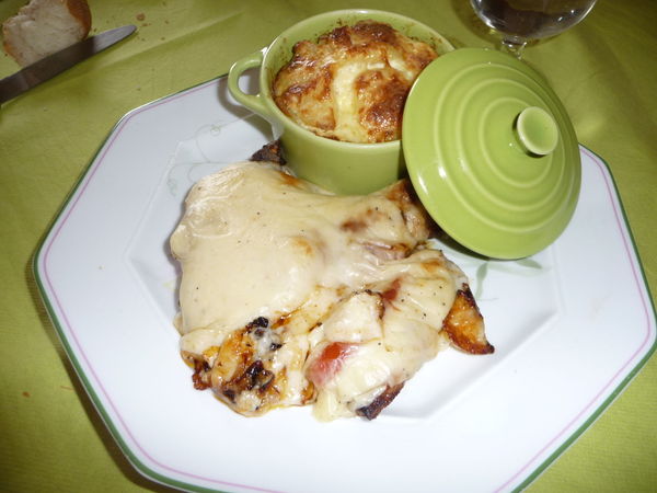 Les cotes de porcs sont moelleuses avec de la sauce et avec du comté, nous avons bien aimé