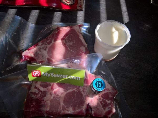 Sur la première photo, les côtes de porc sont mélangées au yaourt, j'ai oublié de prendre la photo avec le yaourt à côté.