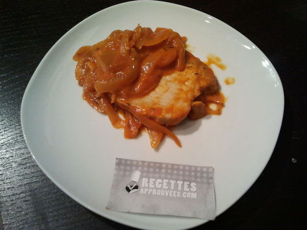 Effectivement, cette recette change de la traditionnelle côte de porc grillée ! Les oignons sont fondants et se marient bien avec ce mélange tomate/moutarde ! Personnellement, gourmande que je suis, je rajouterai bien la prochaine fois, une touche de crème fraîche et/ou une goutte de vin blanc.