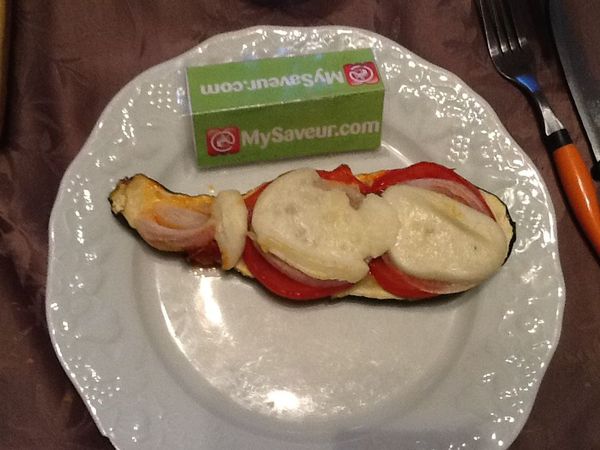 Cuire 30 min ou plus selon four et grosseur de vos courgettes. J'ai servi avec une salade, bonne dégustation.