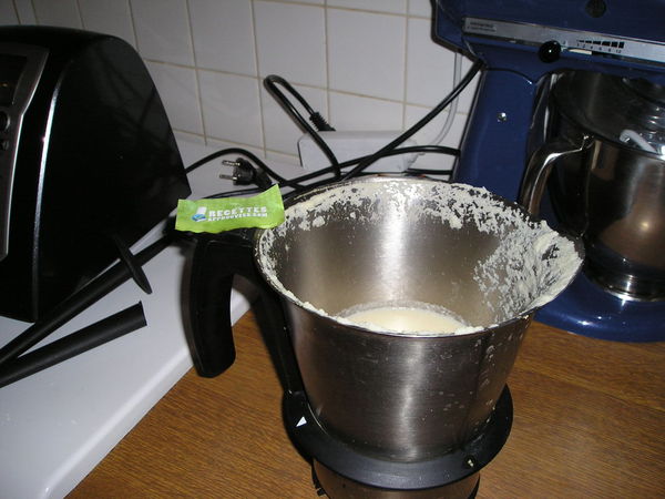 Mixer la crème finement, puis rectifier l'assaisonnement en sel et en poivre. Vérifier l'onctuosité et si c'est trop épais, ajouter du lait.