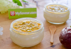 Juste avant de servir, parsemez chaque verrine de pulpe de fruits de la passion.
