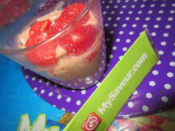 Mettre dans 4 verrines et décorer avec les fraises coupées.