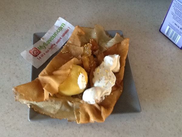 Dans une poêle mettre une noisette de beurre et faites revenir rapidement une crêpe.