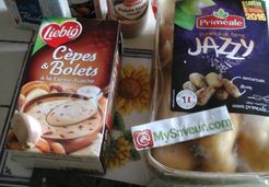 Dans un saladier, verser la crème fraiche et la crème de champignons, mélanger, ajouter l'ail écrasé et mélanger.