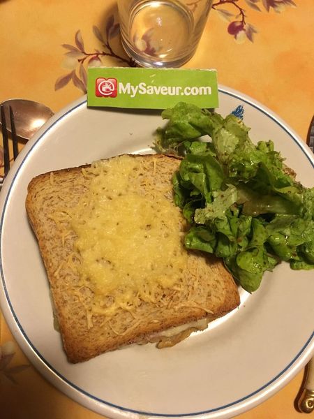 Très bon croque mais avec trop de mozzarella. C'est un peu écœurant. J'aime beaucoup le pain de mie complet, c'est bien meilleur que le blanc dans ce style de plat. 500kcal tout de même.