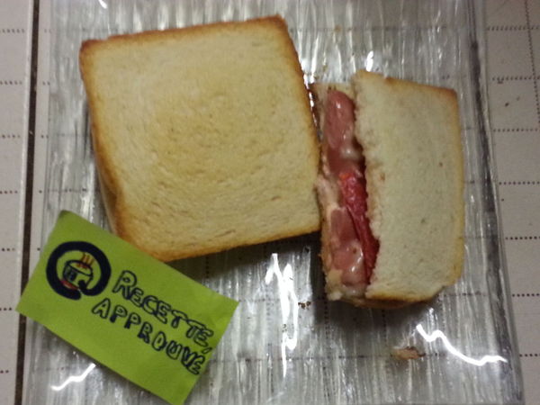 Bonne idée de remplacer le jambon par les saucisses de strasbourg. Mais nous n'avons pas retrouvé le fromage à l'ail et fines herbes, j'aurais préféré une autre tranche de leerdammer