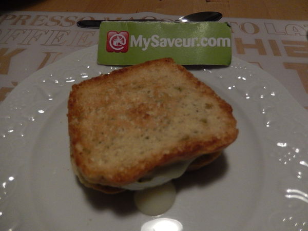 Bon petit croque, très rapide à faire, peu d'ingrédients. Je l'ai dégusté à l'apéro coupé en petits carrés.
