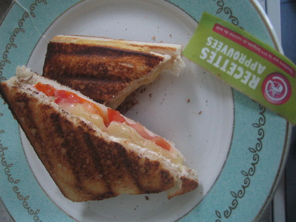 Croque original, nous n'avons pas trop senti le surimi. Par contre, nous avons aimé la tomate qui apporte de la fraîcheur et la raclette qui apportait du goût.