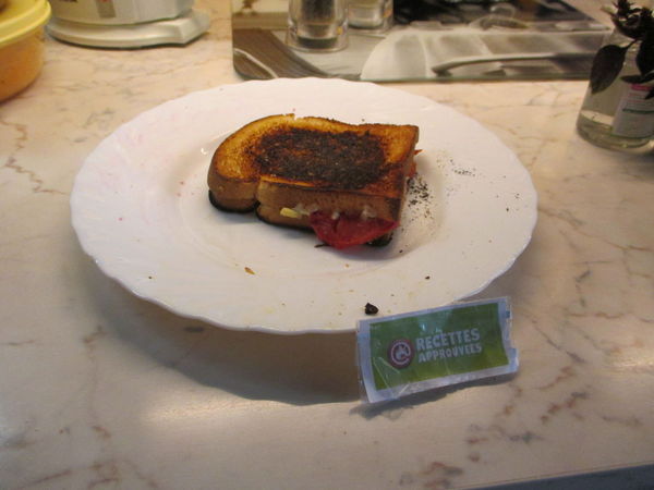 La cuisson à la poêle a permis au croque monsieur de rester moelleux (quand on ne les oublie pas). La tomate apporte de la légèreté. Le poivre relève bien l'ensemble.