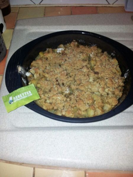 Crumble hyper sucré pour nous, je pense à cause des pommes !! Mais super bon car je n'avais jamais fait en cuisant les fruits avant !