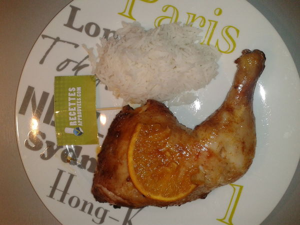 Une très bonne recette, le goût d'orange est très agréable, la viande était tendre. Par contre je pense qu'il y a un problème sur le temps de cuisson, j'ai laissé presque 1h en tout pour cuire et dorer, j'ai ajouté un peu d'eau au fond du plat pour que ça ne sèche pas. J'ai accompagné de riz et de flageolets.
