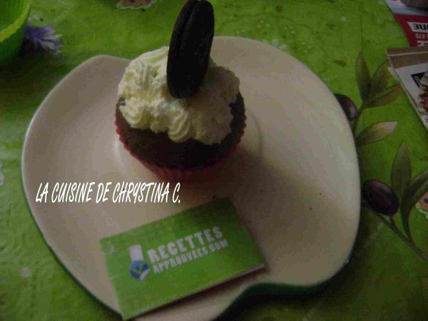 Heureusement qu'il y a le topping (réalisé au "pifométre" puisqu'il n'était pas indiqué les quantités de sucre glace et de lait), car nous avons trouvé que le cupcake en lui-même était un peu sec...
