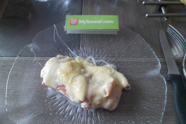 Une bonne recette que je trouve quand même un peu sèche et c'est dommage. Malgré cela, la recette est tout de même bonne dû à la présence du jambon et de la mozzarella. Ma mozzarella n'est pas totalement fondue car je n'avais pas de couvercle à la taille de ma poêle et du coup pour éviter que la viande soit trop grillée sur l'autre face, j'ai dû la retirer avant mais cela n'a pas altéré le goût.