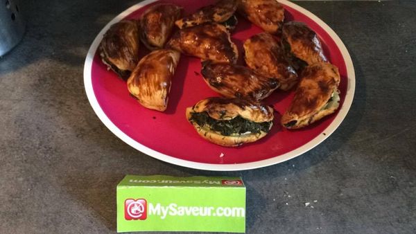 Sur la moitié du cercle, étaler un peu de ricotta et d'épinards, préalablement salé et poivré puis refermer la pâte brisée en formant une demi-lune.