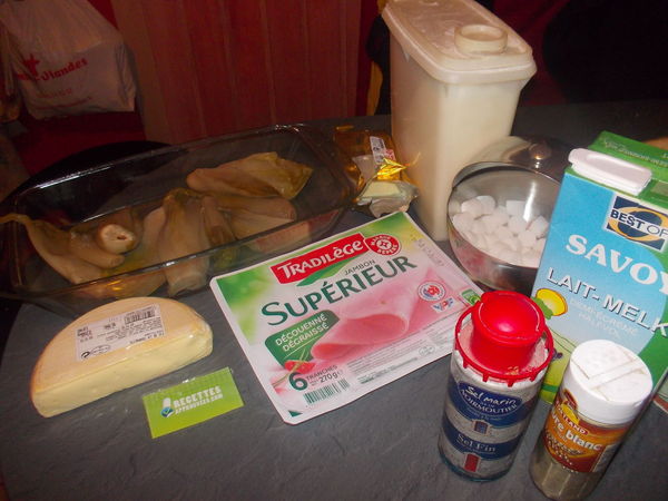 - 1 paquet de jambon cuit (6 à 8 tranches selon le nombre d'endives)
